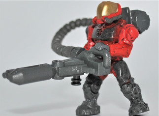 Set Included: Two green Spartan II's, two blue Elites, one red Flame Marine, two beam rifles (v1), one shotgun (v1), one flamethrower (v1) and one SMG (v1).