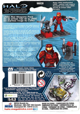 Build your UNSC forces and show the Covenant that knows no bounds with the Halo UNSC Red Weapons Pack from Mega Bloks! The UNSC Red Weapons Pack is armed with an arsenal of Earth weaponry to help turn the tide of any Human-Covenant skirmish. Included is a gun rack with six UNSC weapons to arm your soldiers on the battlefield, a high-powered AIE-486H Heavy Machine Gun turret to defend soldiers from advancing Covenant infantry, and a UNSC Red Spartan-II to use it!